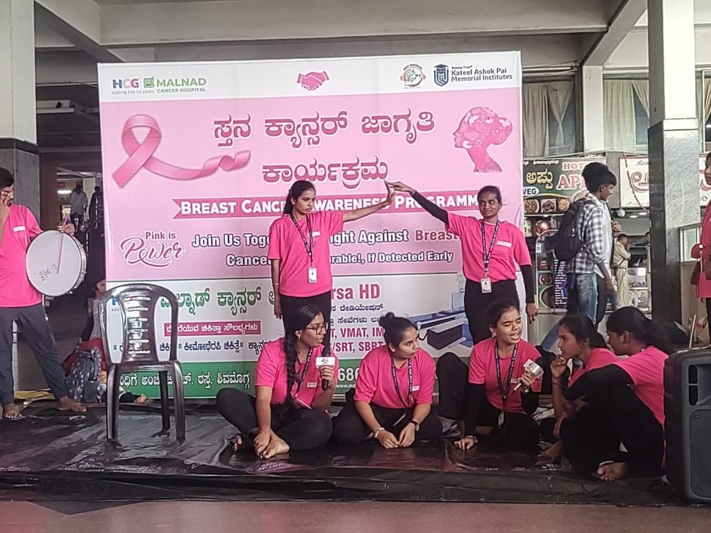Adding a creative touch to the event, students from the Department of Social Work, Kaatil Ashok Pai College, presented a powerful street play (bayalu nataka). The play depicted the challenges faced by women diagnosed with breast cancer, the stigma surrounding it, and how early detection and proper treatment can save lives. The performance received huge applause from the audience and succeeded in spreading the core message “Awareness is the first step toward cure.”